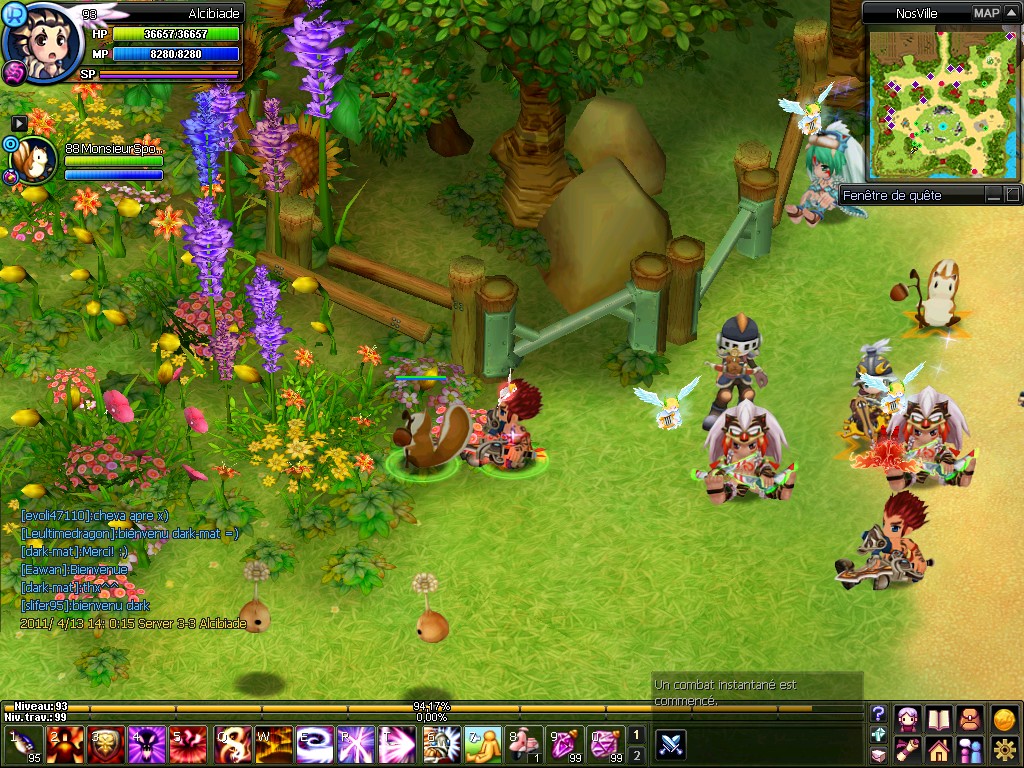 Des screens du mois d'avril 2011. Le 1er, moi perché après avoir joué à chatbite. Le 2è, le dernier survivant de Nostale. Le 3è, ma place préféré à l'époque. Le 4è, une fusion de personnage.